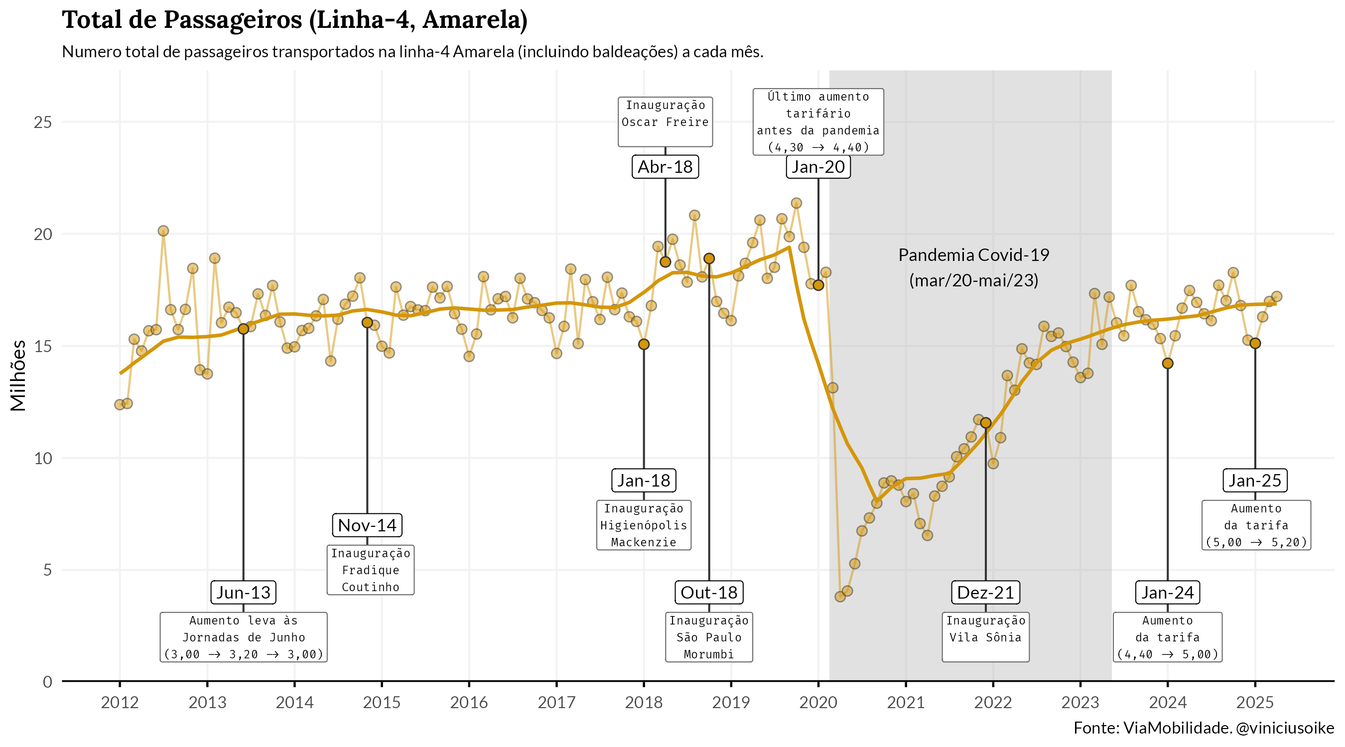 Neste post, analiso o fluxo de passageiros na Linha 4-Amarela do metrô de São Paulo.