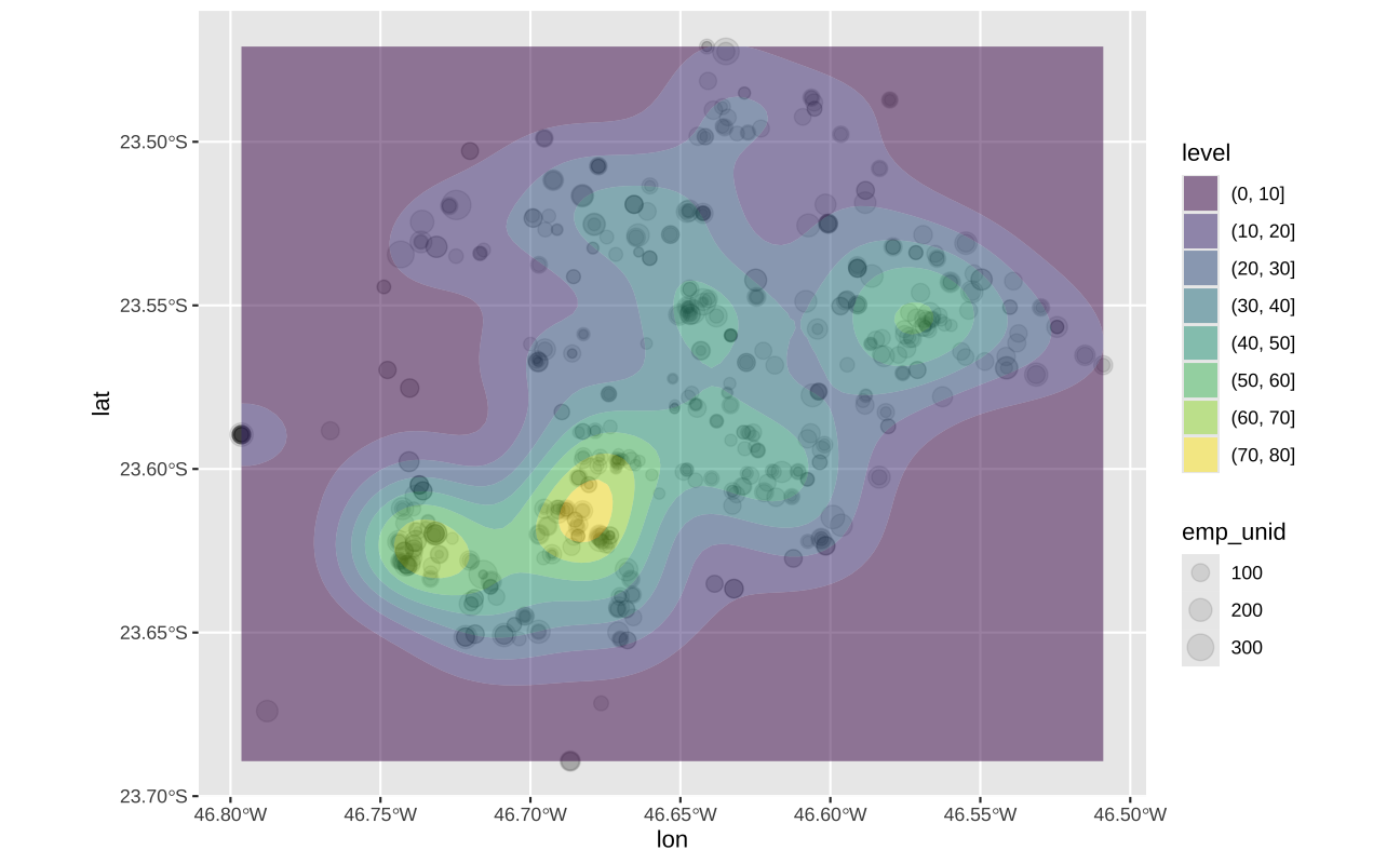 geom_point(aes(size = emp_unid, color = as.factor(emp_tipo)), alpha = 0.5) +