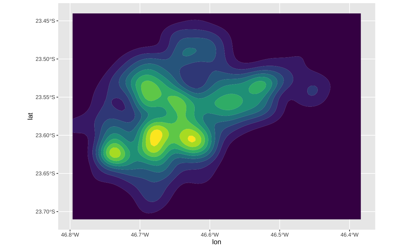 Pode-se agregar os pontos em mapas de calor (contorno). Há duas funções principais: