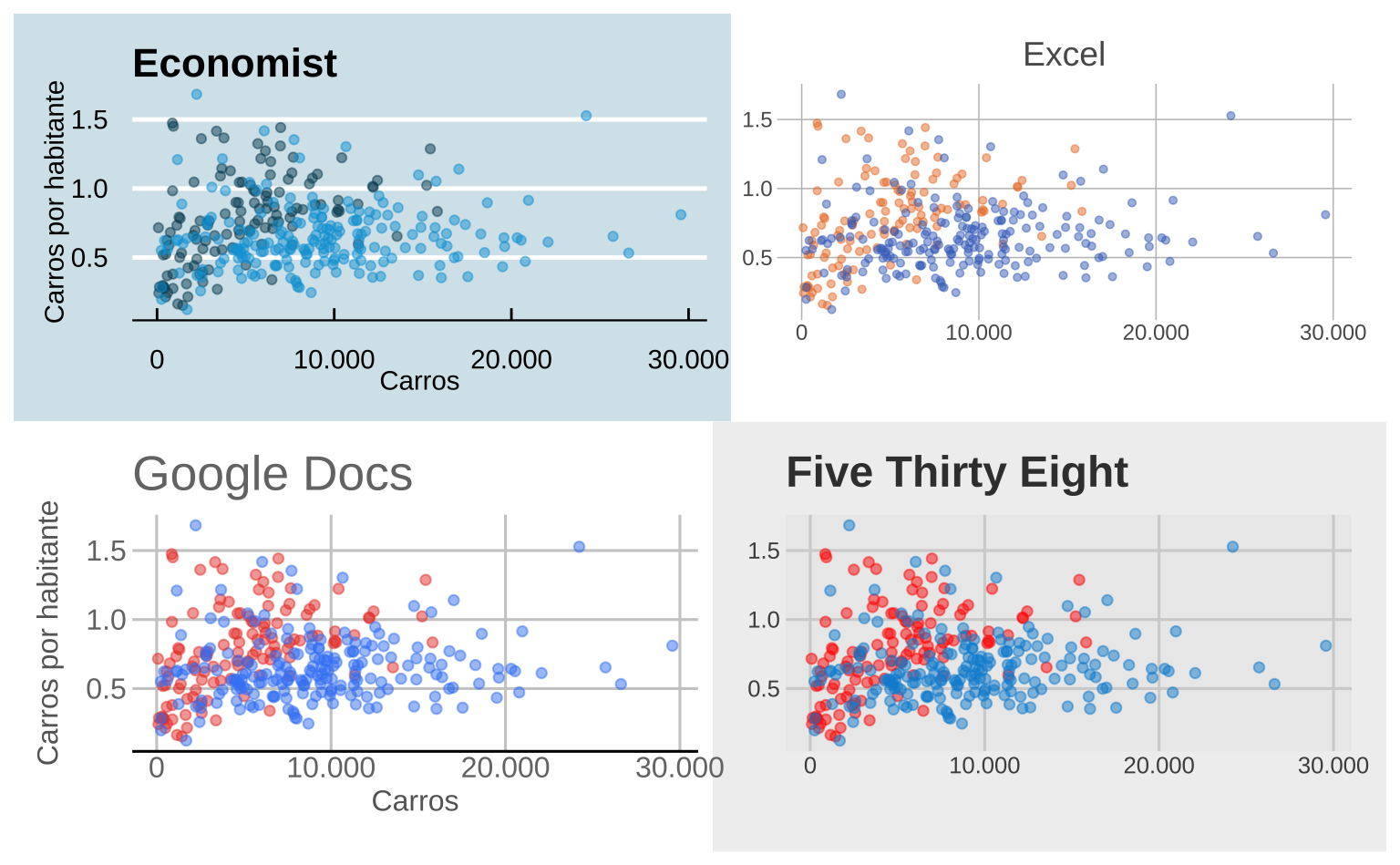 . Abaixo mostro alguns temas diferentes aplicados ao mesmo gráfico. Para não sobrecarregar a visualização eu omito a legenda.