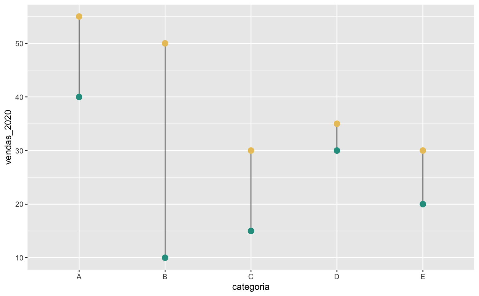 geom_segment(aes(xend = categoria, y = vendas_2020, yend = vendas_2021)) +