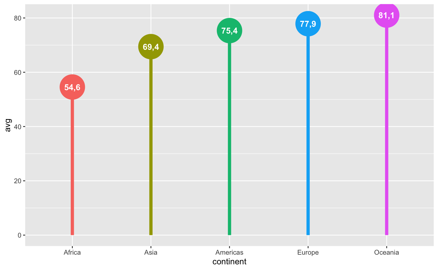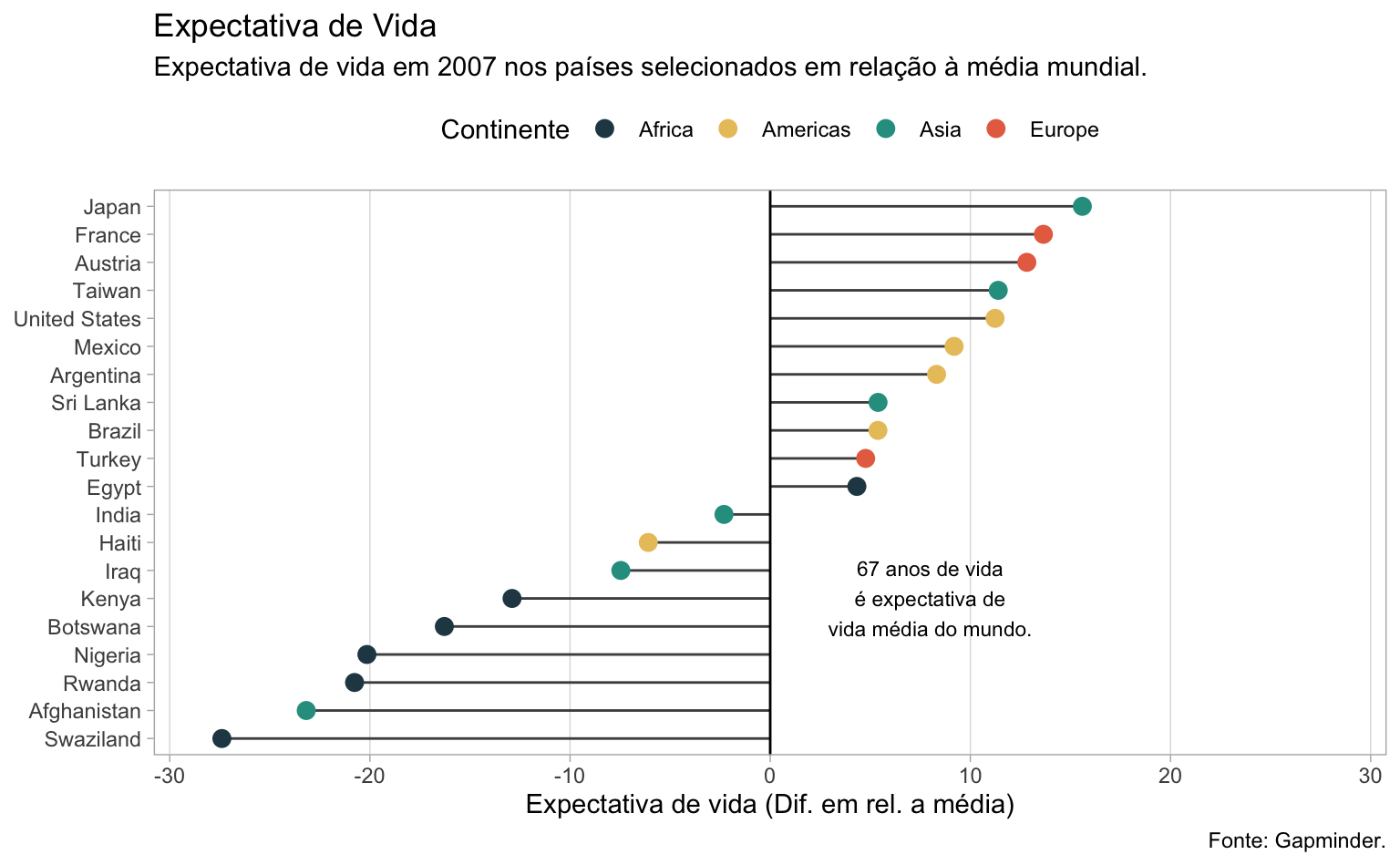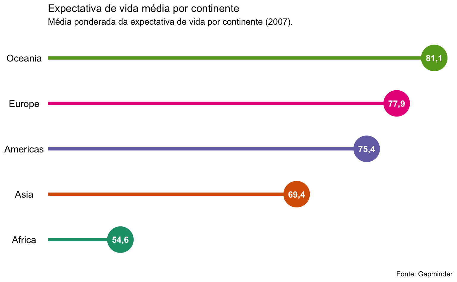 Até aqui, o gráfico de lollipop parece muito similar a um gráfico de colunas, com as desvantagens de ser mais complexo e de exigir mais linhas de código. O exemplo abaixo deixa isto evidente.