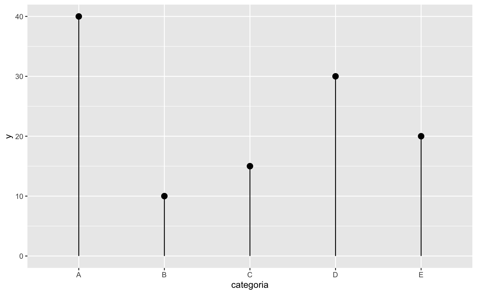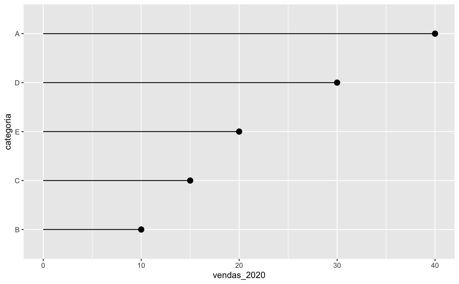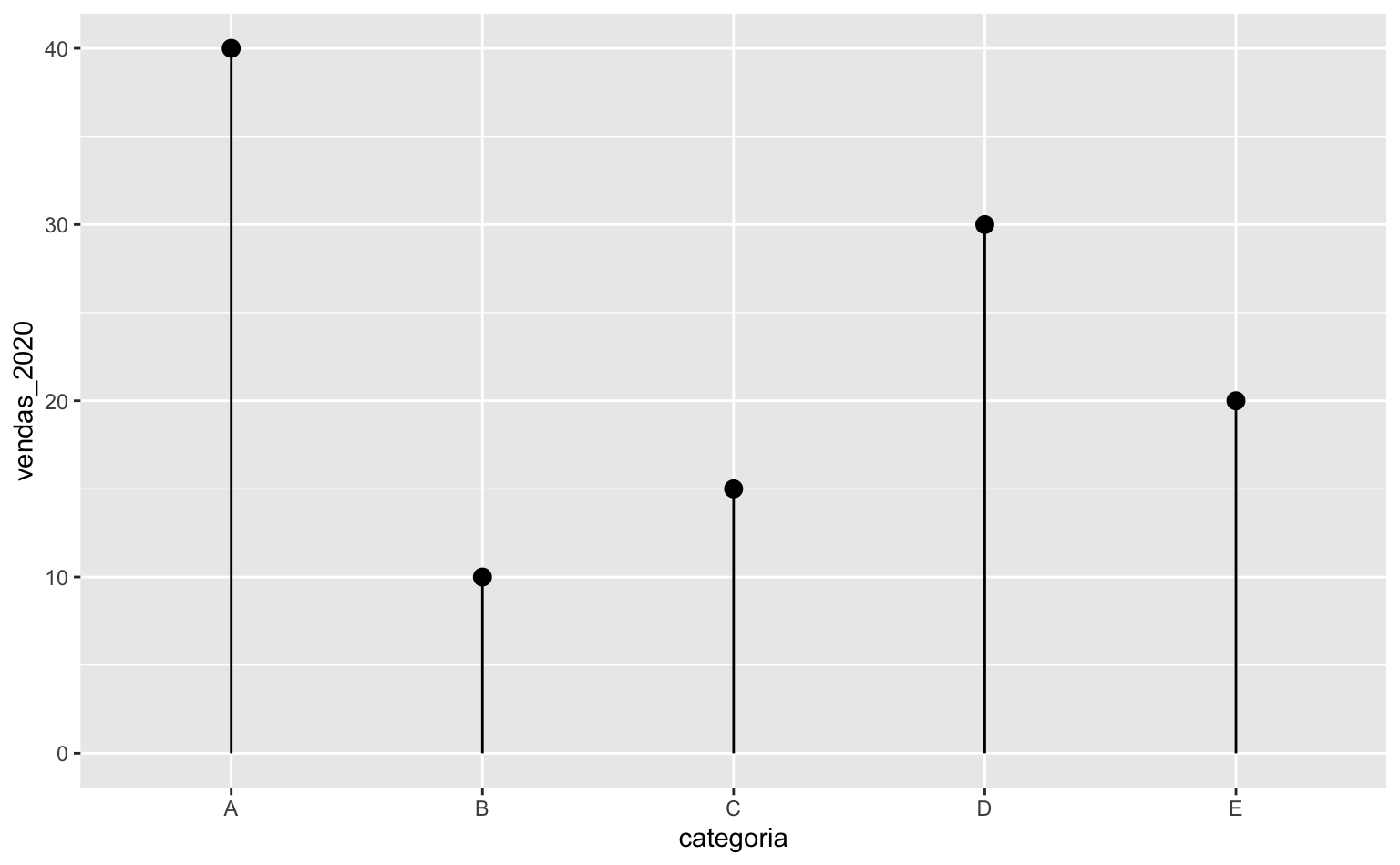 O código abaixo cria um gráfico de lollipop com a base de dados criada anteriormente.
