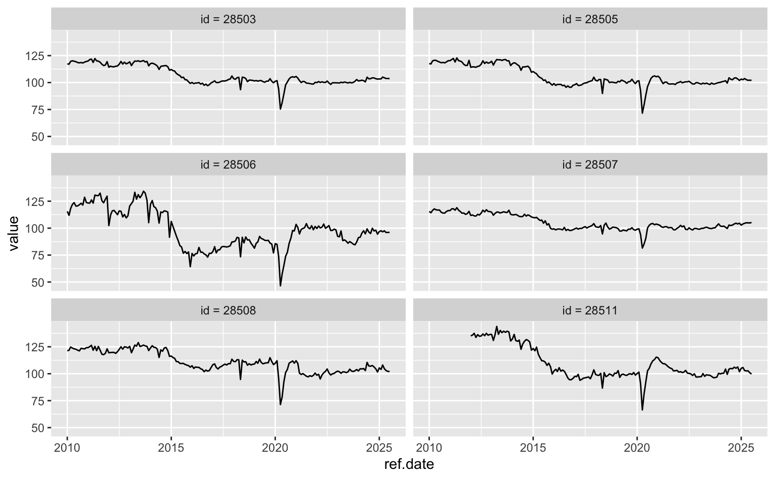 ggplot(data = series, aes(x = ref.date, y = value)) +