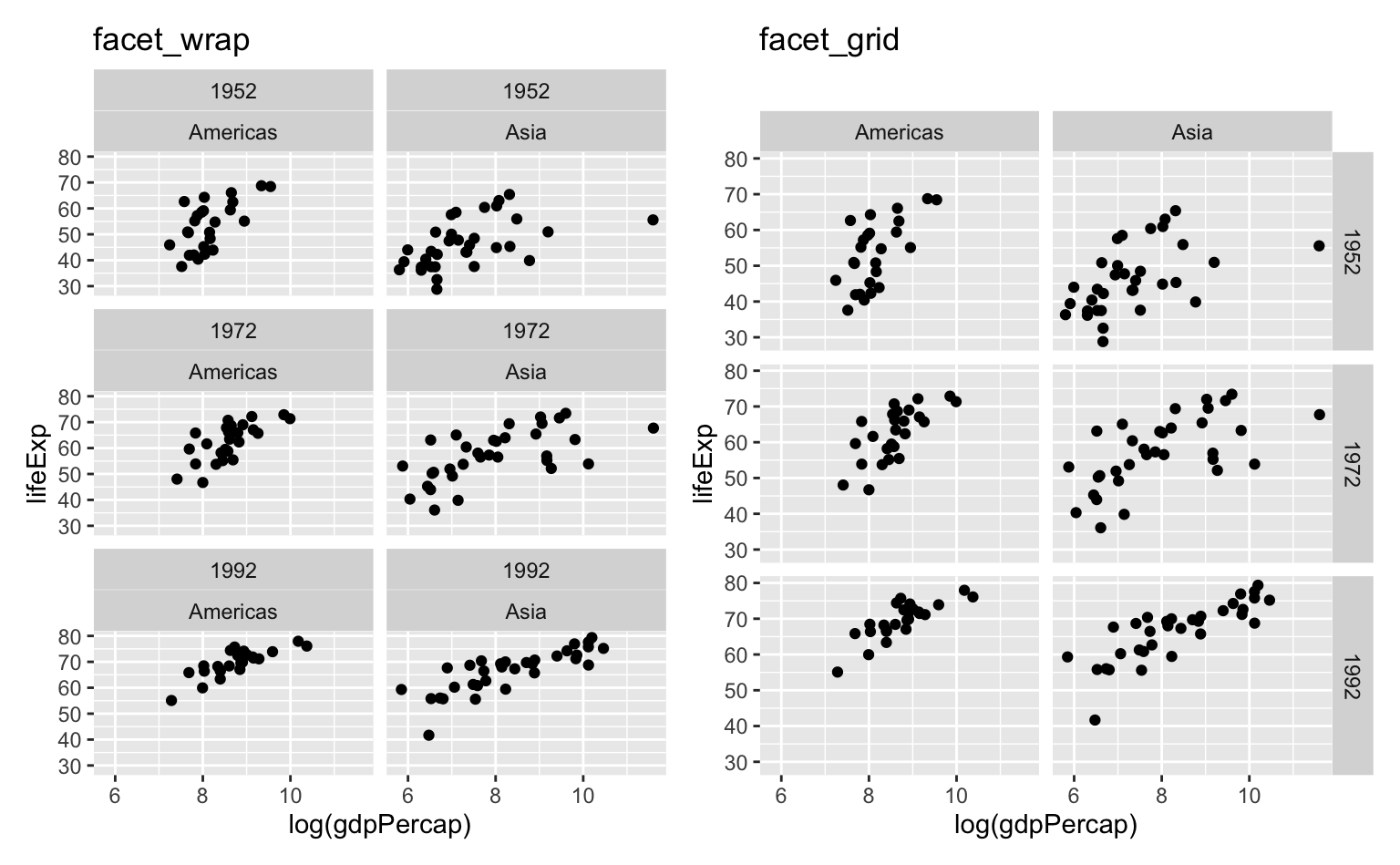 é a mais atual e é a que será utilizada neste post. Podemos controlar a disposição dos gráficos restringindo o comportamento dos eixos com o argumento scales