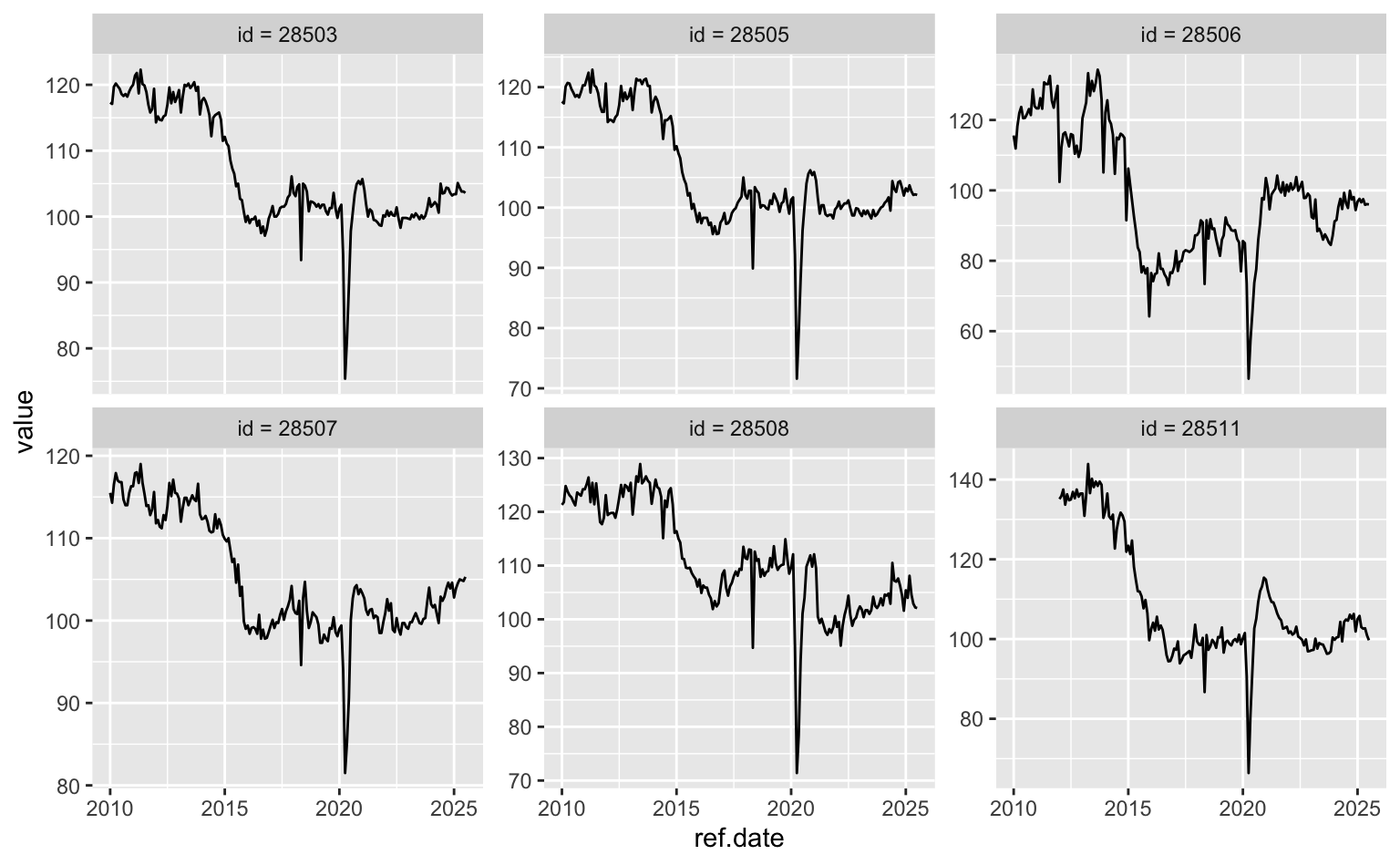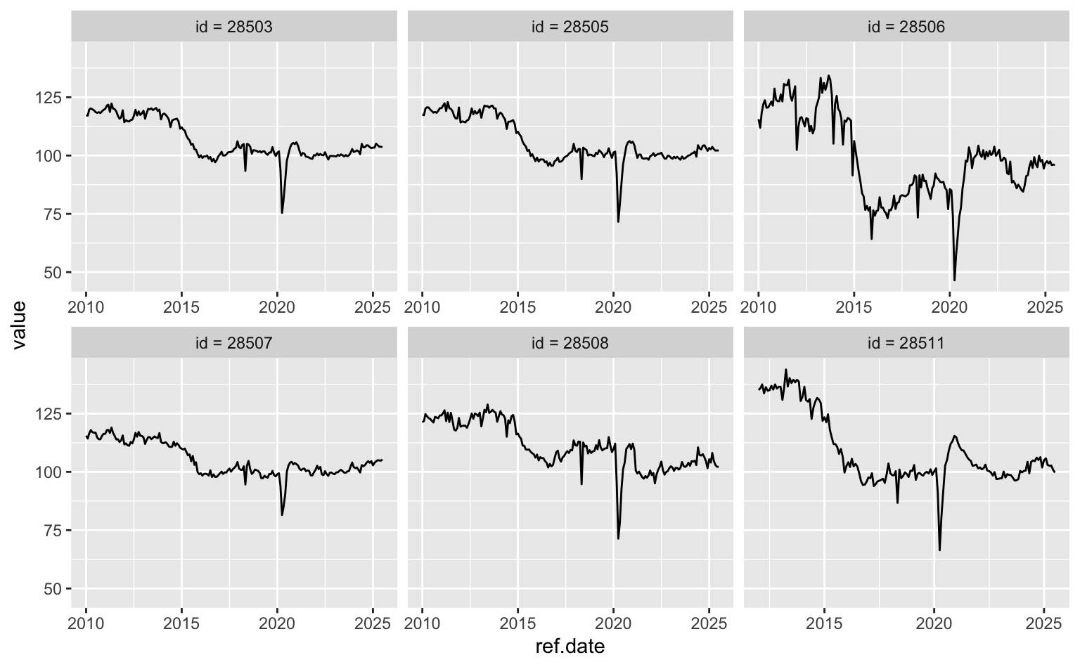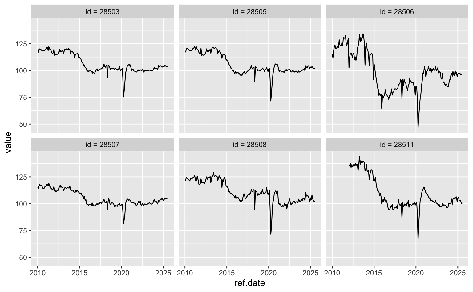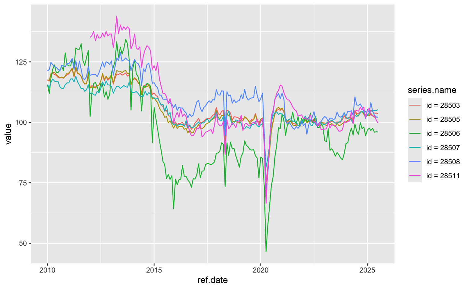 <- gbcbd_get_series(id = codigos, first.date = as.Date("2010-01-01")) series